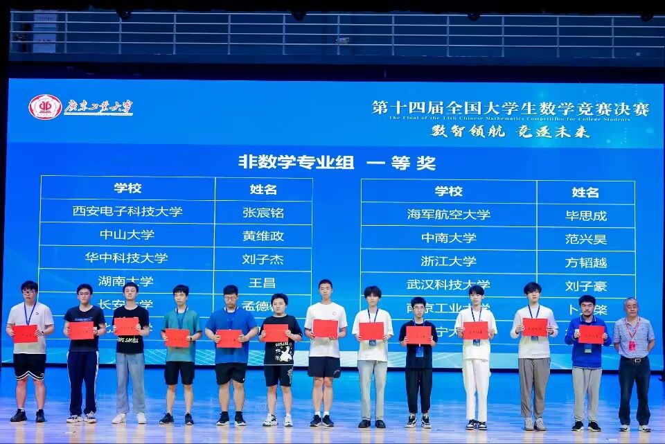 武科大网讯 5月28日,第十四届全国大学生数学竞赛决赛在广东工业大学落幕。我校参赛选手刘子豪、柯毅、黄浩分别荣获非数学类一、二、三等奖,入围决赛人数、获奖成绩均创我校在该赛事历史最好成绩。