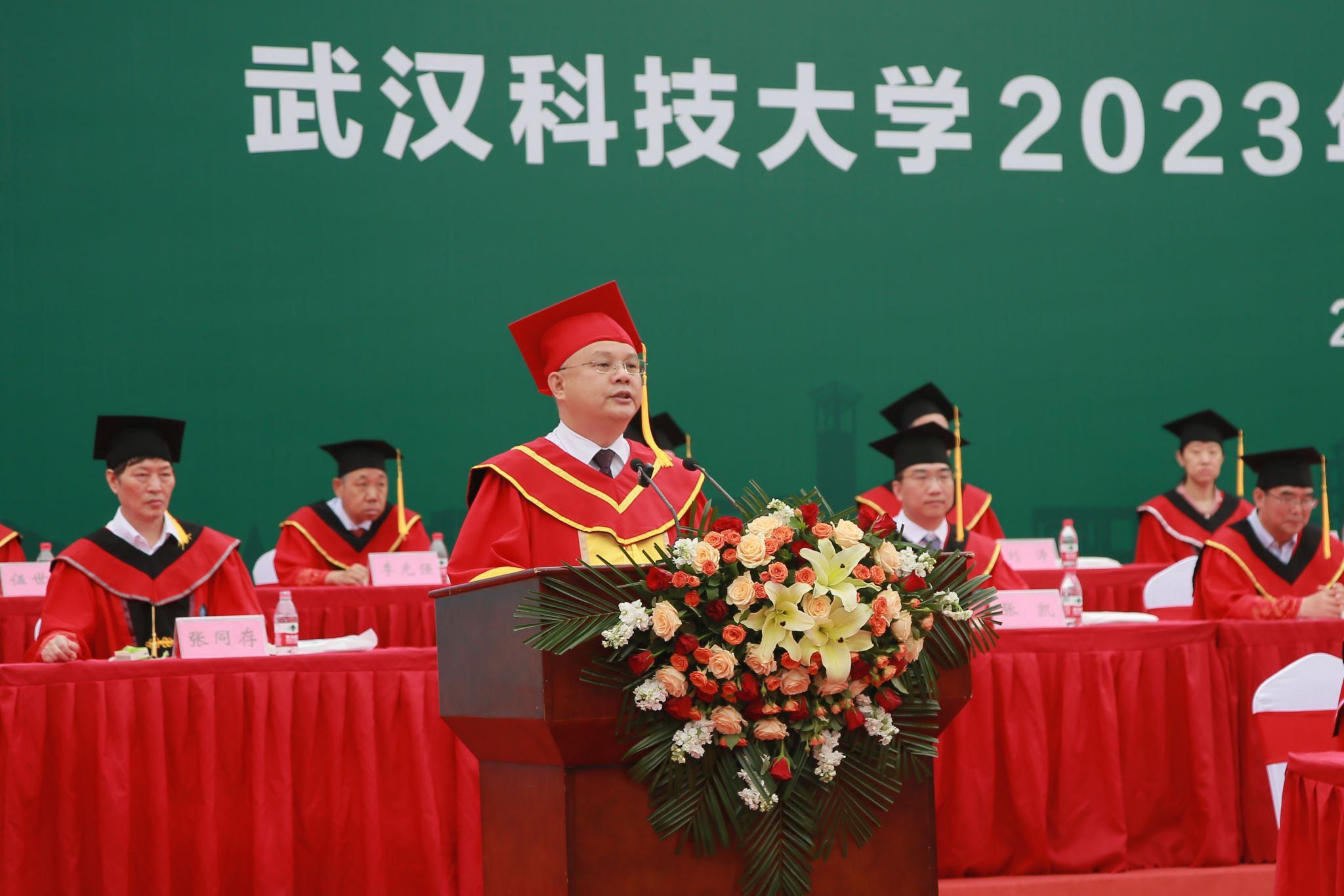 倪红卫以《坚守向美之心 共赴美好未来》为题,寄语毕业生:“回望历史,风雨越大,越要坚定自信,越要从容面对。”他希望毕业生们,坚守向美的生活态度,悟人生之美;坚守向美的精神品质,塑人格之美;坚守向美的兴趣爱好,立生命之美;坚守向美的健康体魄,铸身心之美。他勉励毕业生,永远做“向上向美、力行力新”的武科大人,努力担负起新时代赋予的伟大使命,创造无愧于新时代的美好人生。他发出邀请:“我校即将启用校友卡,从本届毕业生开始。欢迎你们凭校友卡随时返校,看看学校的新变化,看看学校的新发展。”