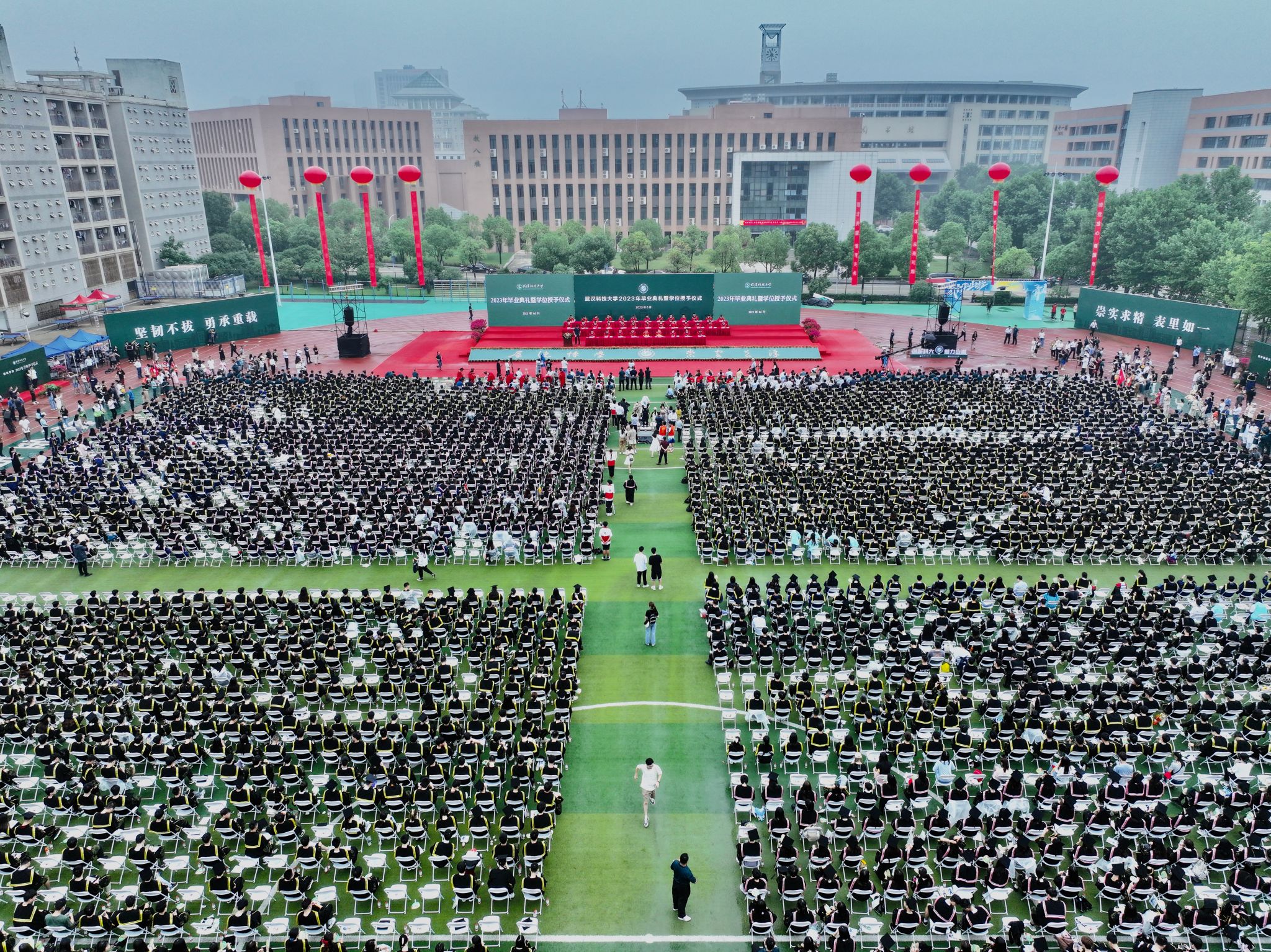 武科大网讯(记者张虎琛)6月18日上午,我校在黄家湖校区南园体育场隆重举行2023年毕业典礼暨学位授予仪式。校党委书记徐雁冰、校长倪红卫等全体校领导出席活动。校党委副书记孙国胜主持毕业典礼。教师、校友及毕业生家长代表齐聚现场,共同见证八千多名学子的毕业时刻。