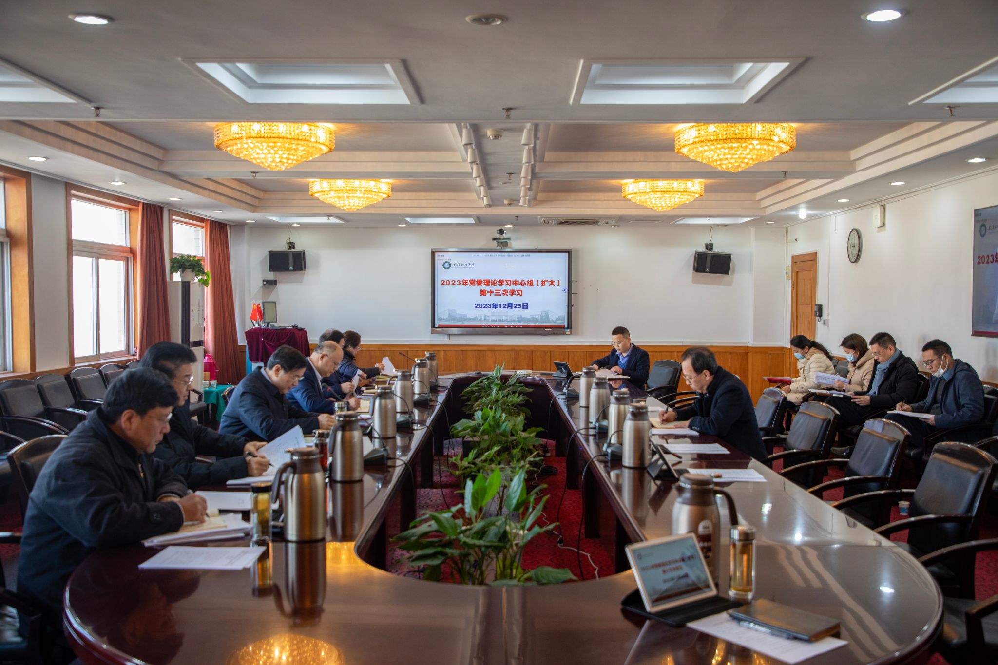 武科大网讯 12月25日,学校在青山校区主楼1610会议室举行党委理论学习中心组(扩大)第十三次学习。党委书记徐雁冰主持学习会议并讲话。党委副书记、校长倪红卫和全体党委常委参加学习。