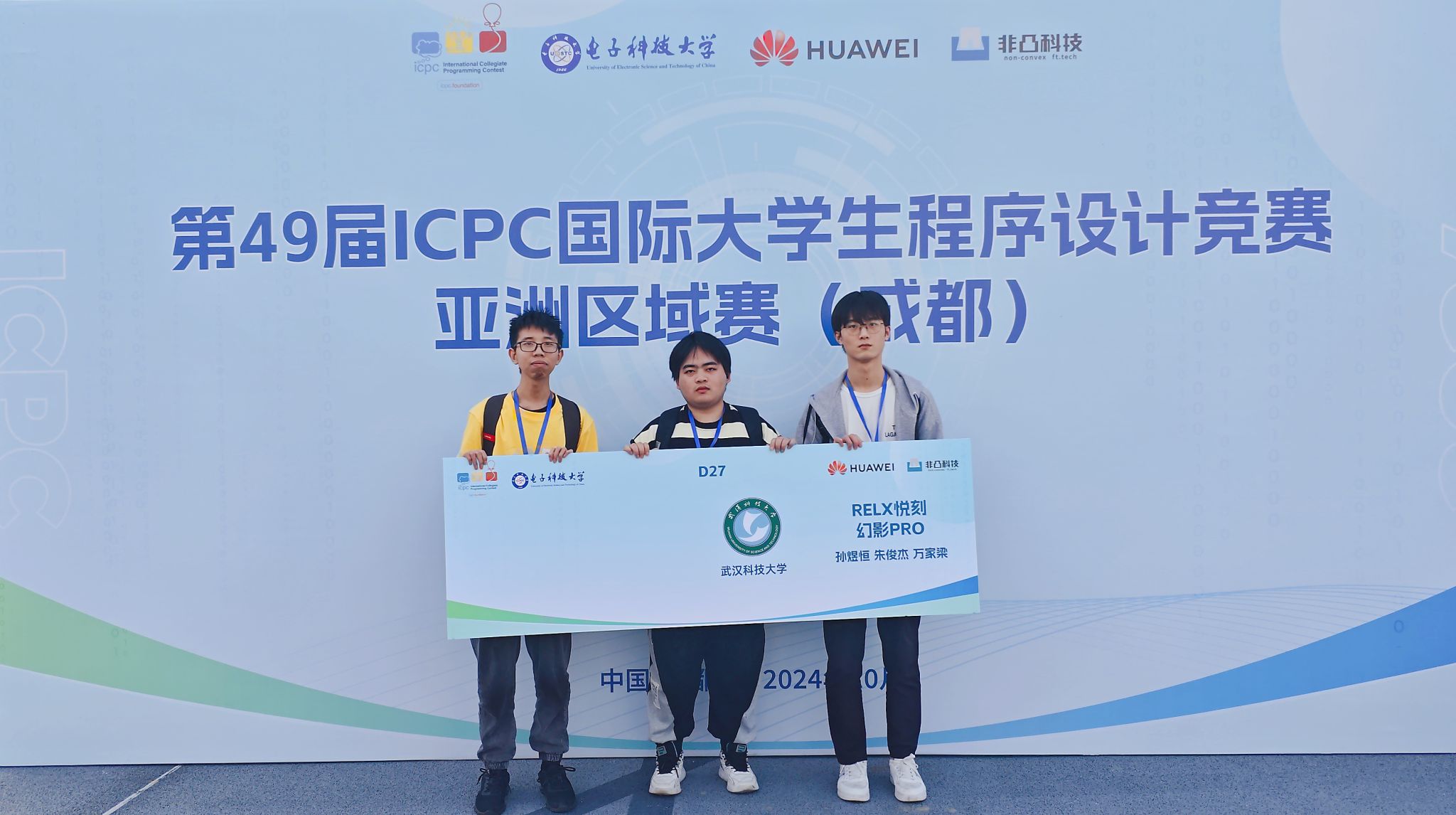 武科大网讯(通讯员施卓凡 张炎)10月27日,第49届ACM-ICPC国际大学生程序设计竞赛亚洲区域赛(成都站)在电子科技大学圆满落下帷幕。我校计算机科学与技术学院ACM俱乐部派出的代表队“RELX悦刻幻影PRO”表现出色,经过长达5小时的激烈比拼,在众多强劲对手中脱颖而出,成为湖北省唯一获金奖高校。