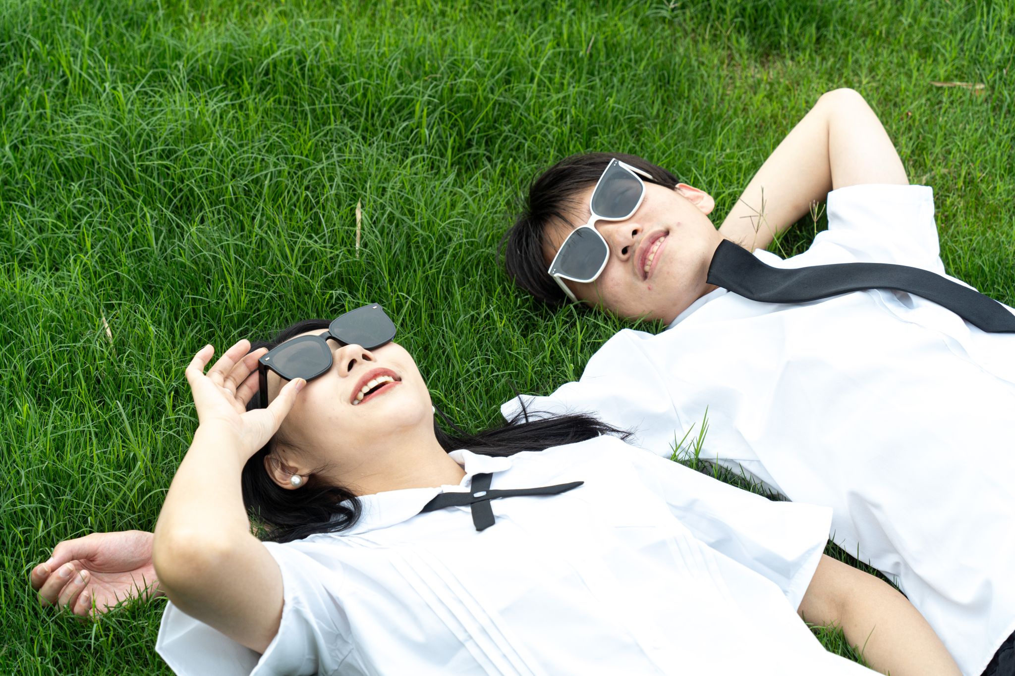 一起躺在草坪上 张贝贝摄